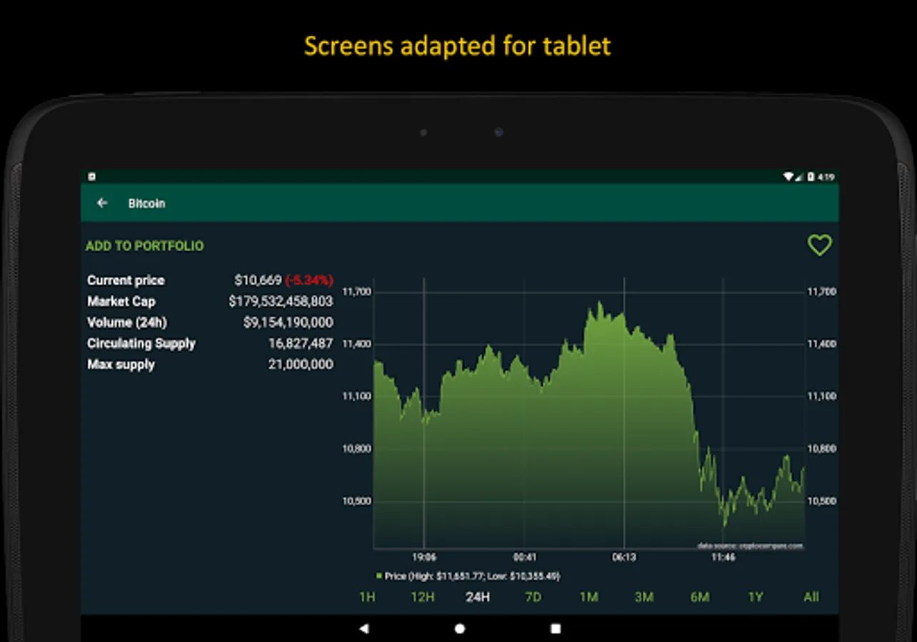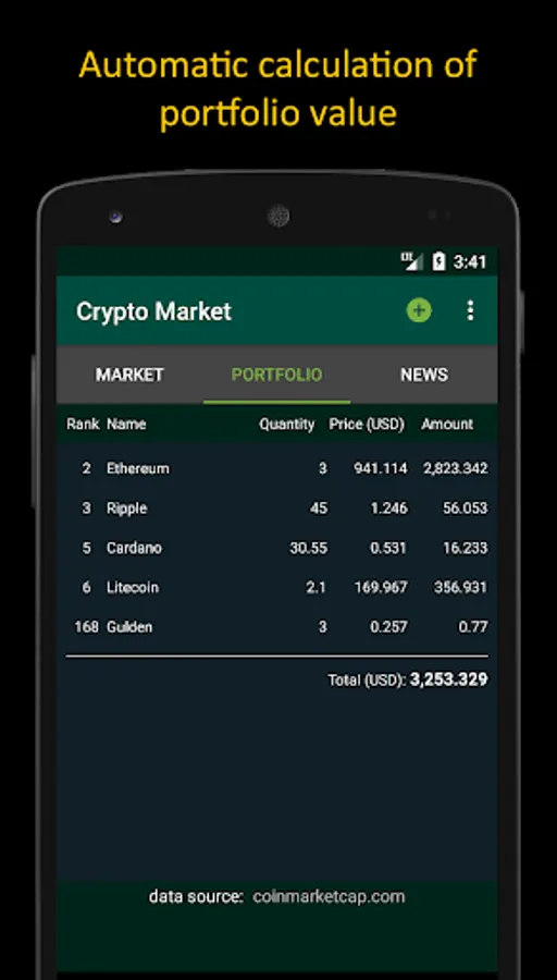 - Keep an eye on current market prices thanks to the data provided by CryptoCompare