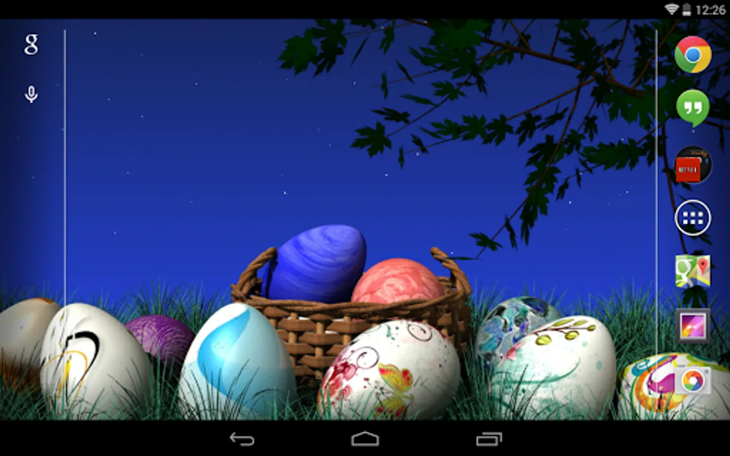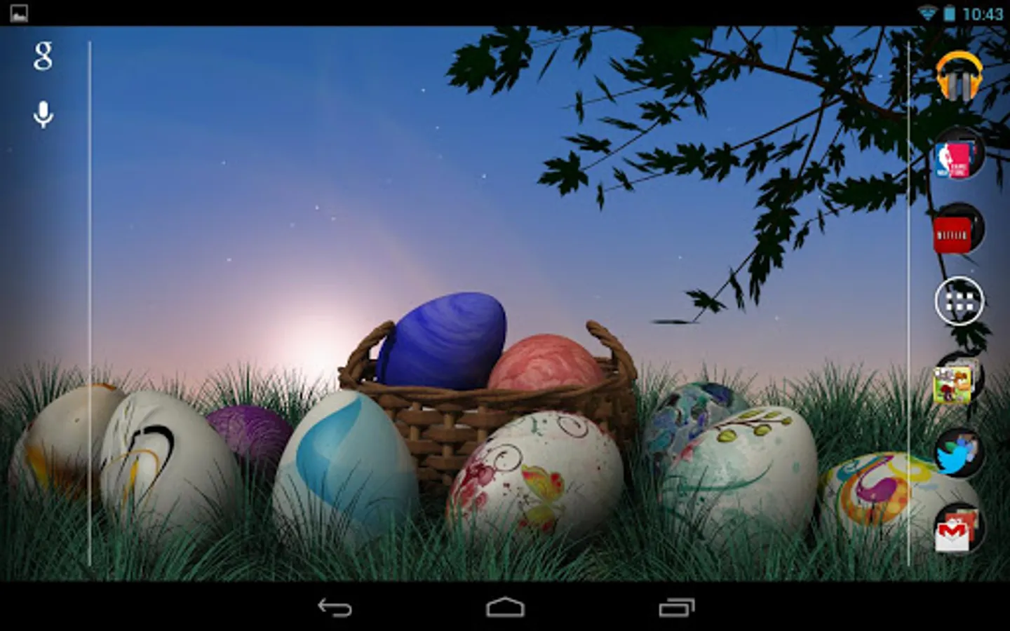 Enjoy the Easter Holiday with this Free Easter Egg Live Wallpaper. Colorful eggs and a beautiful dynamic background! The Easter Eggs sit nestled in the grass to soak in the morning sun or glimmer under the twinkling stars at night.