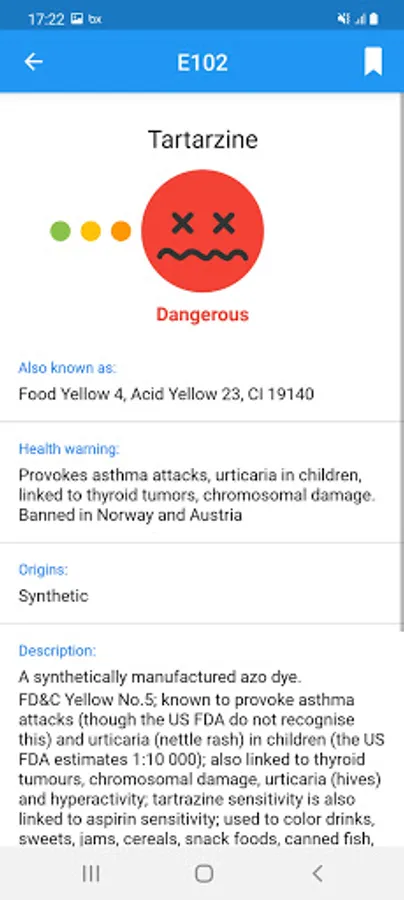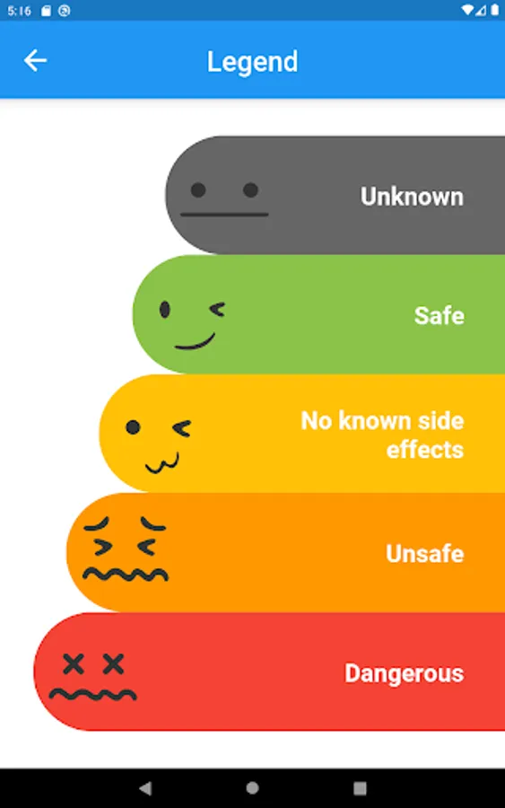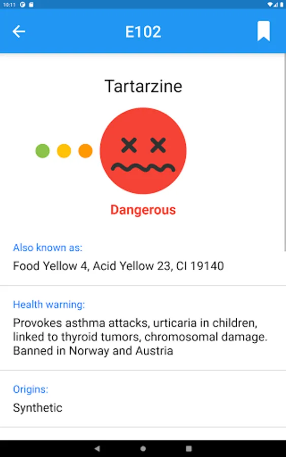 - The different color ratings clearly distinguish safe, dangerous and neutral additives: