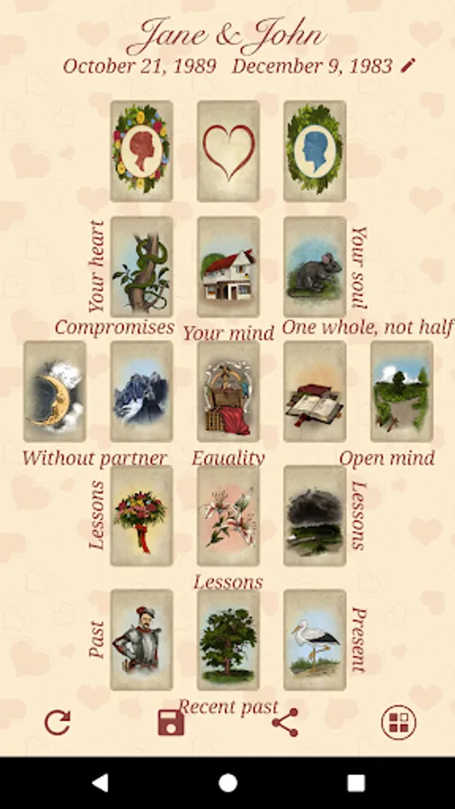 Benefit from the centuries-old wisdom that Lenormand Tarot cards carry within, and find out more about your love life. Is this really the person for you, how will your relationship unfold, when will you meet love?