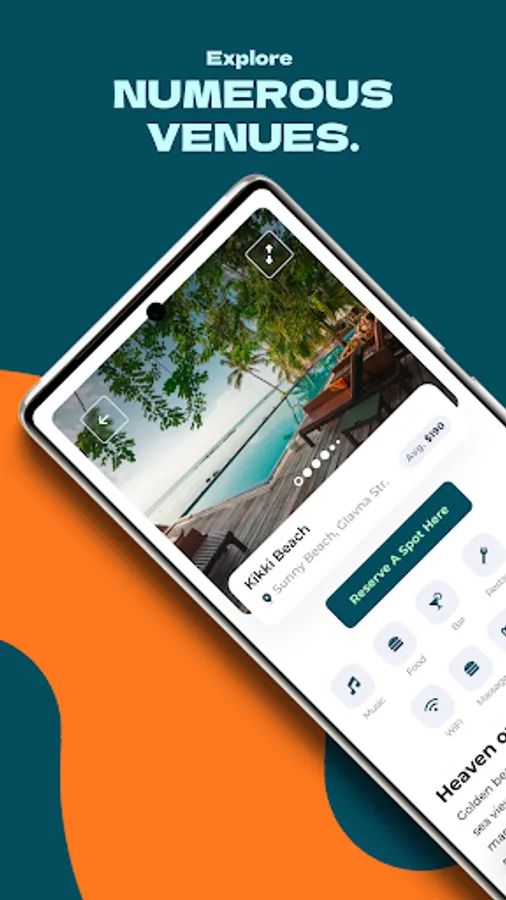 Embark on unforgettable adventures with our app! Discover amazing destinations, hidden gems, and reserve spots effortlessly. Say goodbye to hassles and embrace well-organized vacations! Unleash your wanderlust and make every day extraordinary. Whether it's a relaxing beach, vibrant club, or trendy bar, find it all here. Your dream vacation awaits!