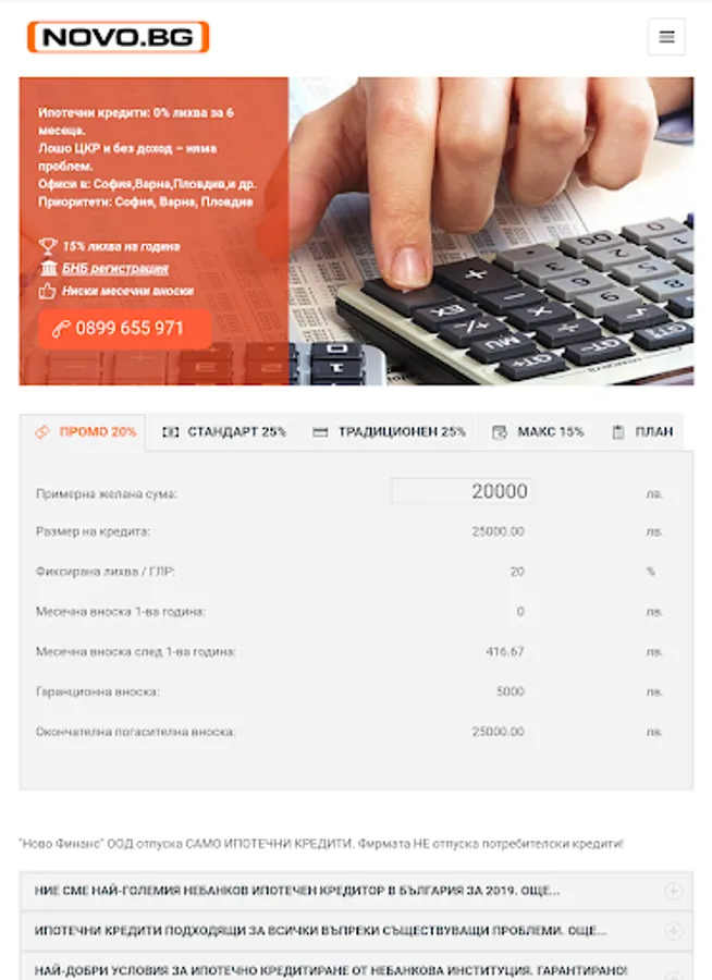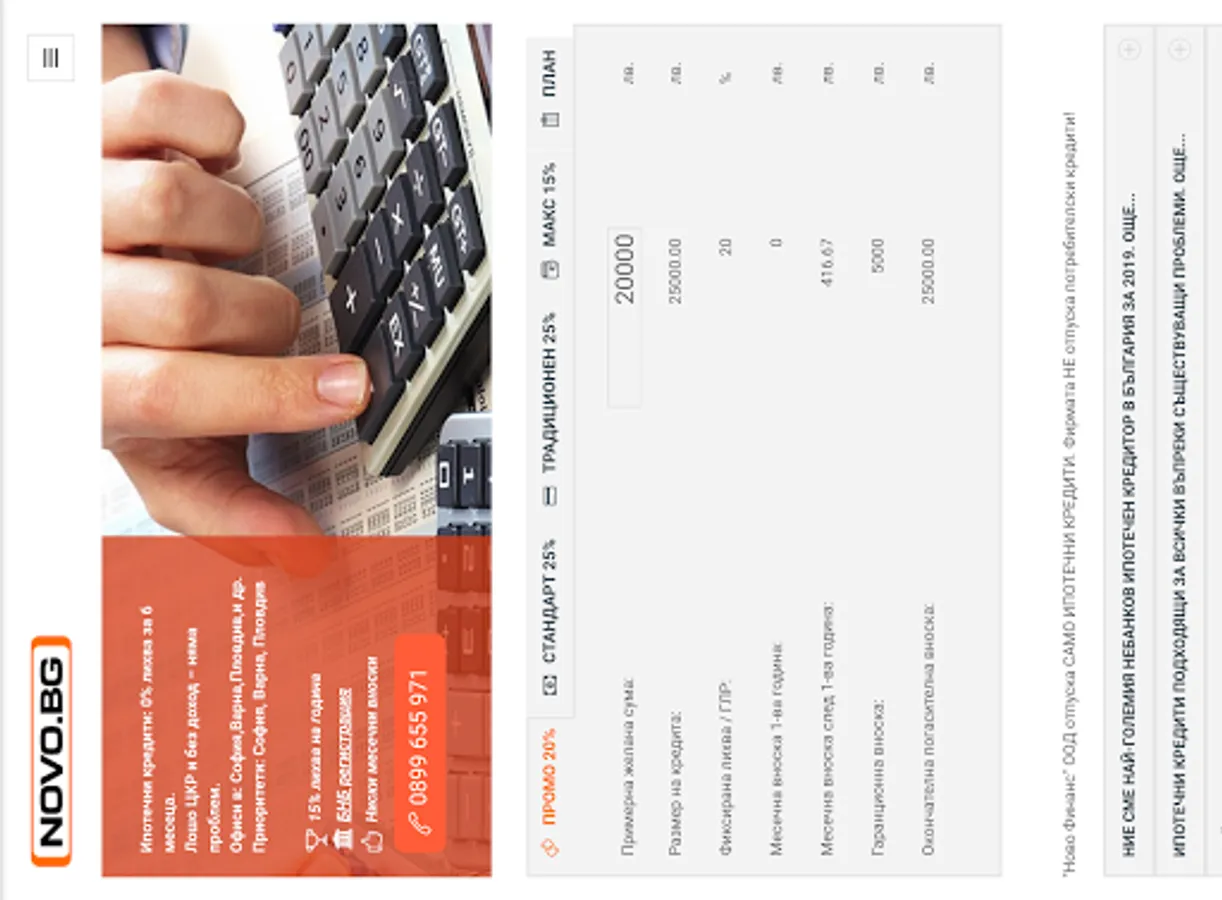 Novo Finance OOD is a non-bank financial institution entered in the register of financial institutions kept by the BNB. Grants mortgage loans against MORTGAGE.