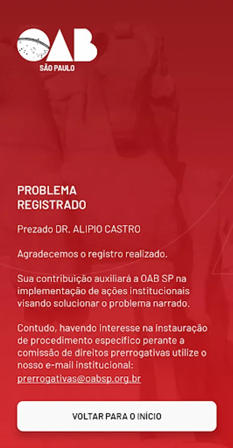 This app aims to identify and map the difficulties encountered by Advocacia Paulista in the course of its professional practice before public administration and Judiciary bodies, in order to allow the institutional performance of OAB SP.