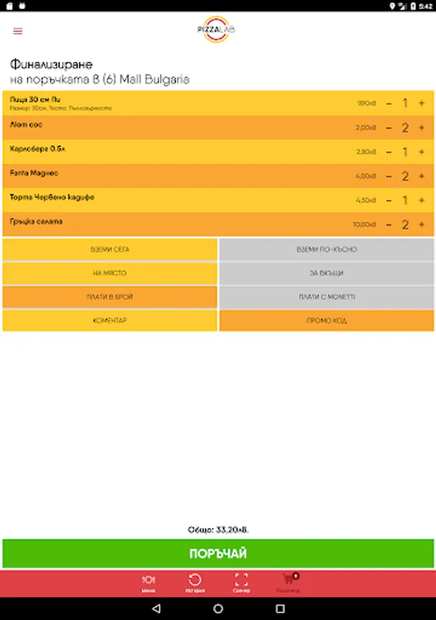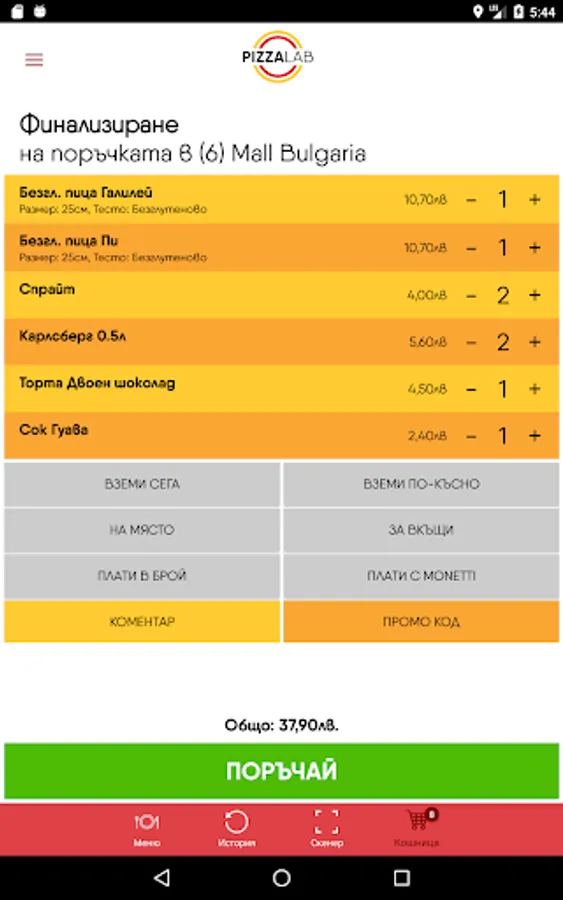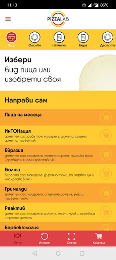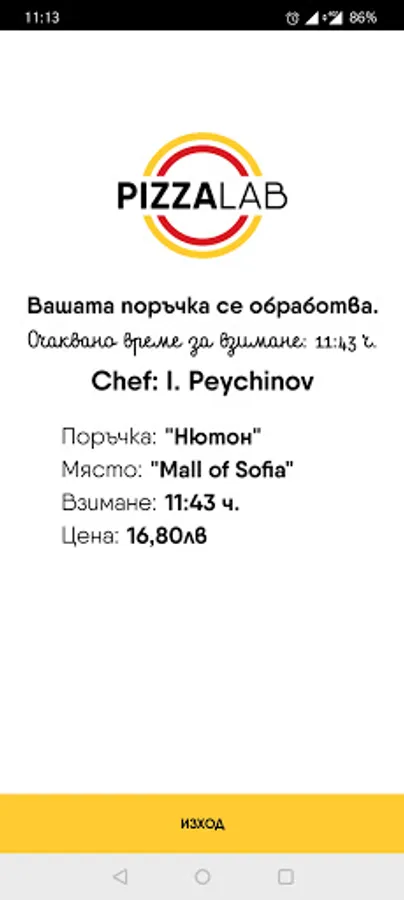 With our app you place an order in just a few clicks and then collect everything ready from the chosen PIZZALAB!