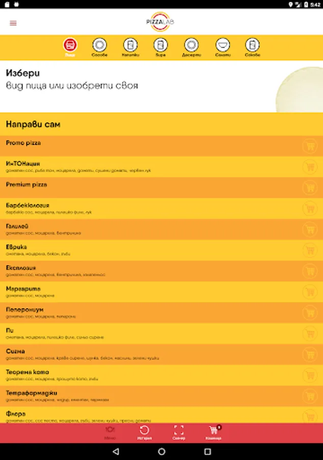 At PIZZALAB we believe that everyone is an inventor and has the imagination to find the formula for the best pizza! We are only giving you the ingredients for your success. Two types of hand-kneaded dough, interesting sauces, variety of the best-quality cheeses, selected meats, salami by original recipes and fresh vegetables.