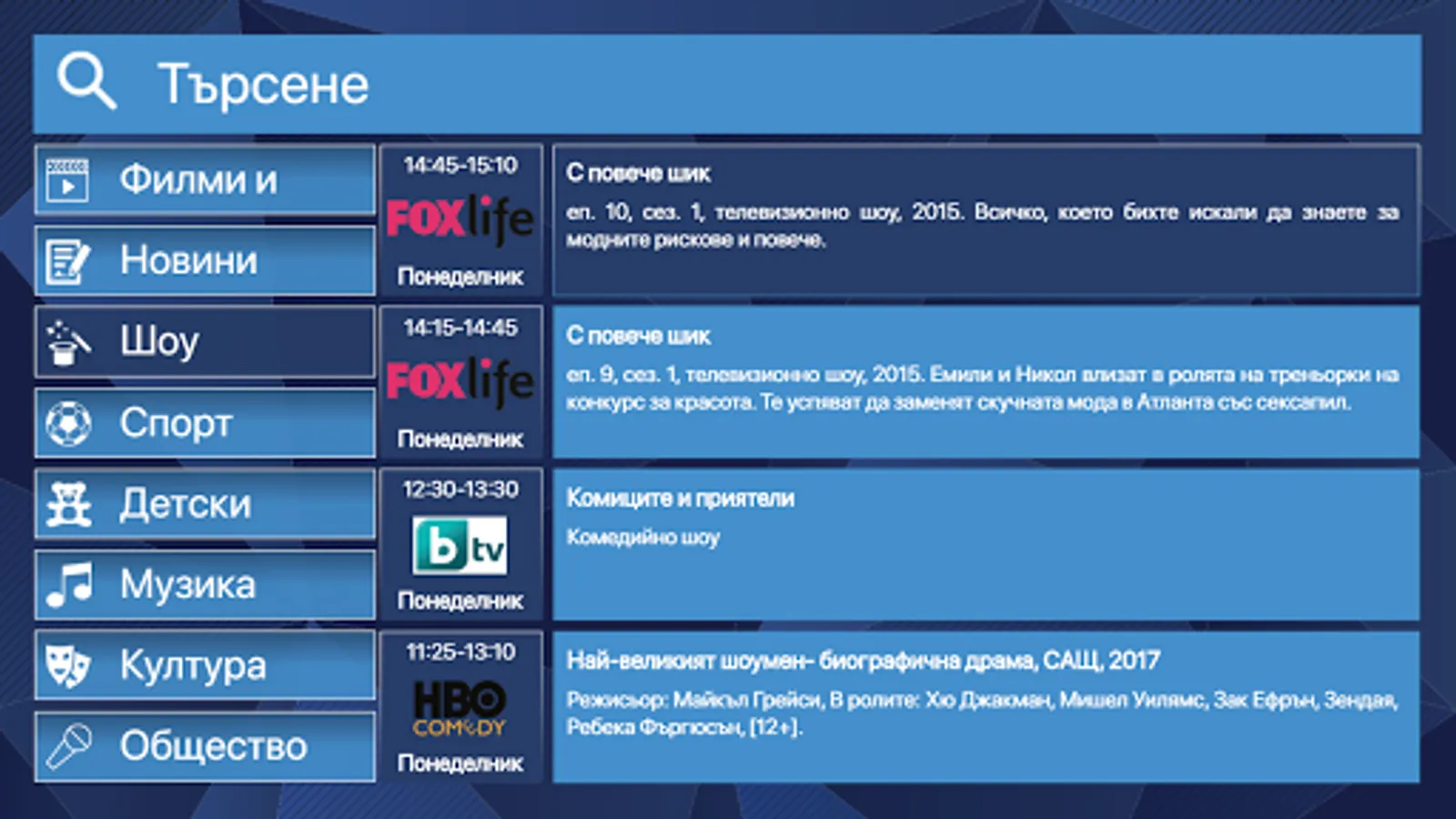 - Electronic directory for the television program;