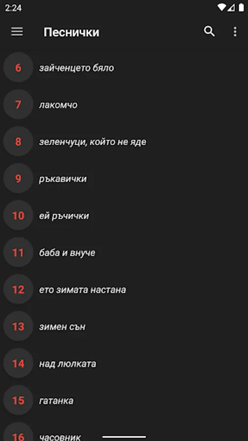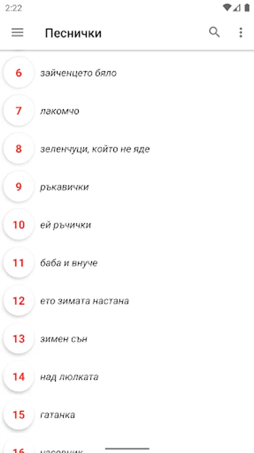 За сега приказките са около 250, в бъдеще ще бъдат добавяни и нови. Добавени са и близо 100 записа на песнички, както и още около 50 руски песнички. В приложението са добавени и няколко аудио басни.