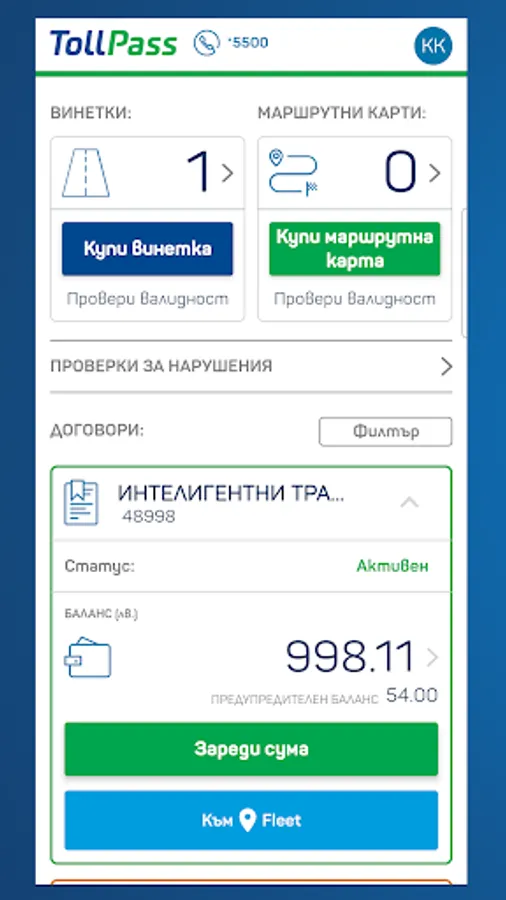 TollPass App ensures the use of basic functionalities and services of the online toll platform TollPass.bg.