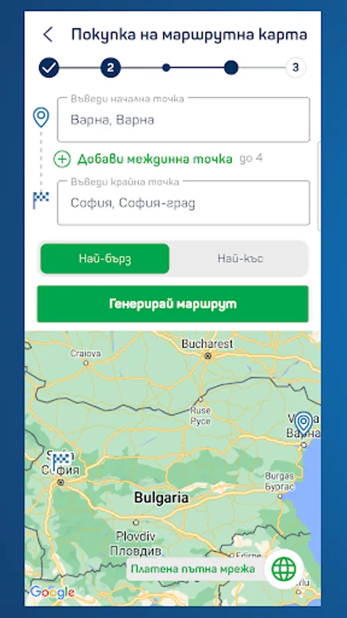 • Toll cost calculation for each route in Bulgaria and Europe