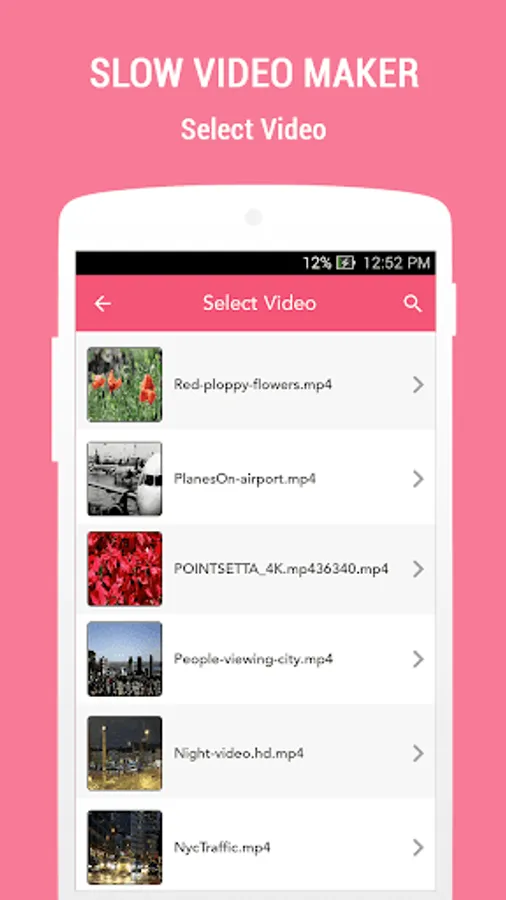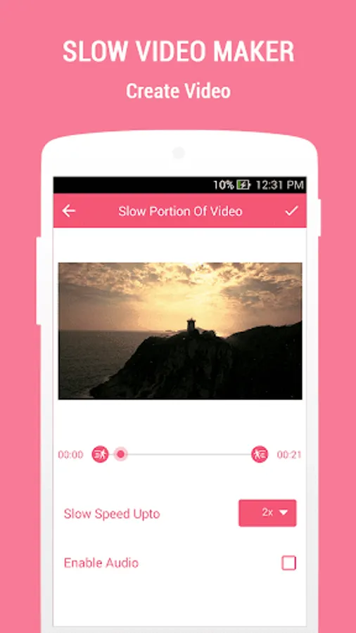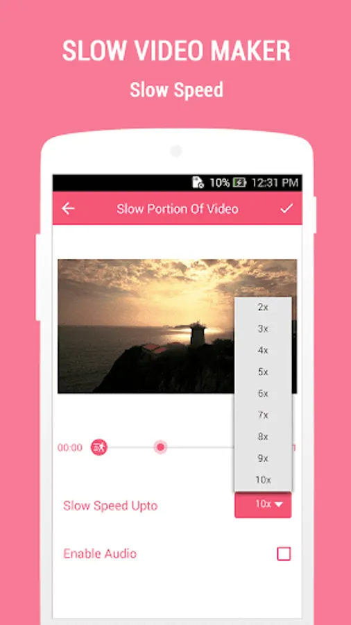 - Select factor for fast video such as 1/2x,1/3x .. upto 1/10x for altra slow motion.