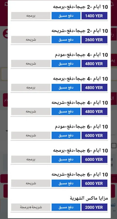 Payment services, payment and activation of various packages