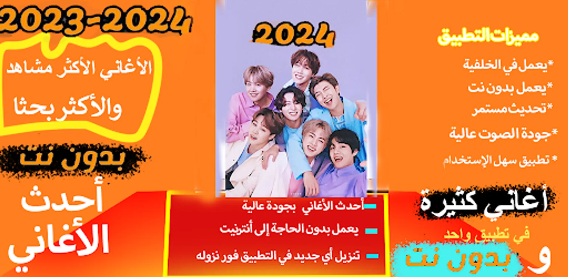 The BTS Songs application is an application that allows you to listen to all new and old BTS songs without the Internet and without the need to search for them. They are in your hands now. You can listen to them whenever you want. Download the BTS Songs application now.