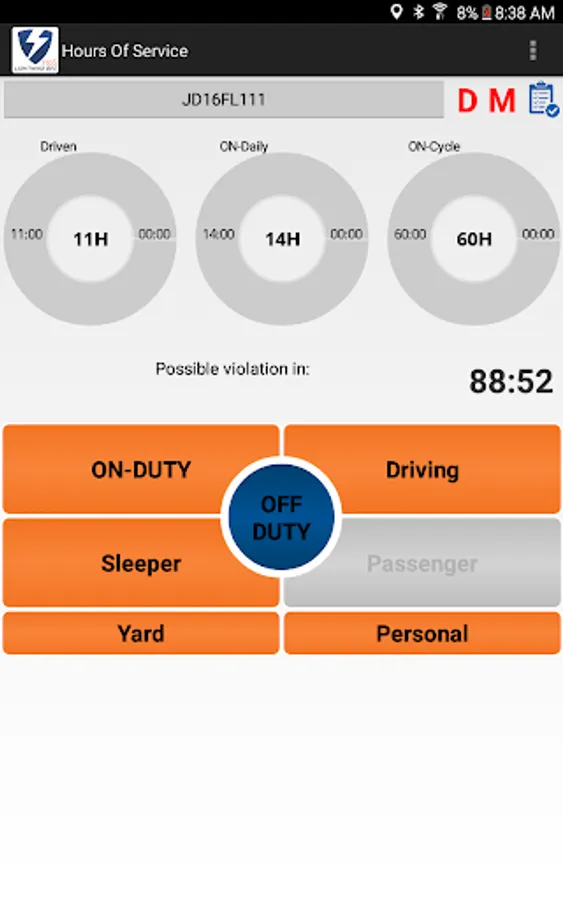 -When the truck is stationary for 5 minutes or more, it will default to on-duty not driving and the driver must enter the proper status