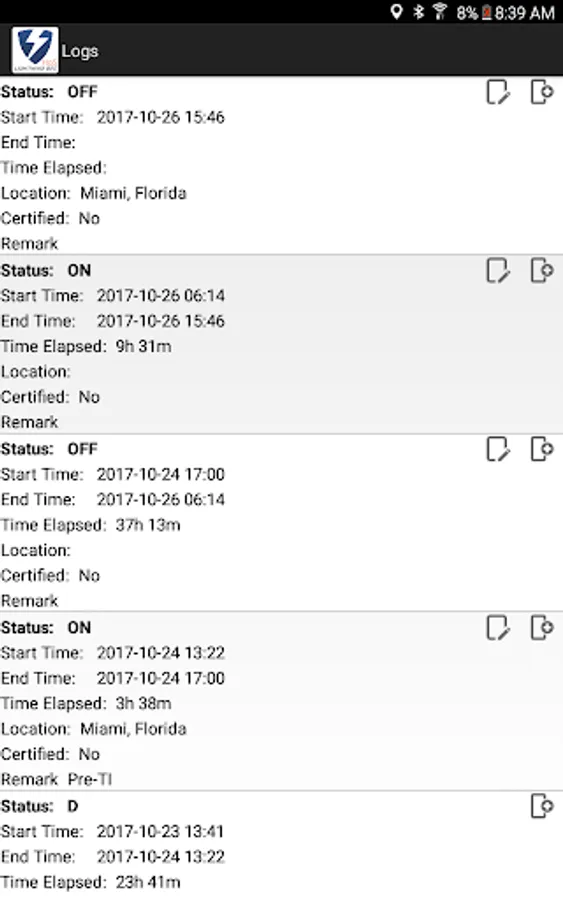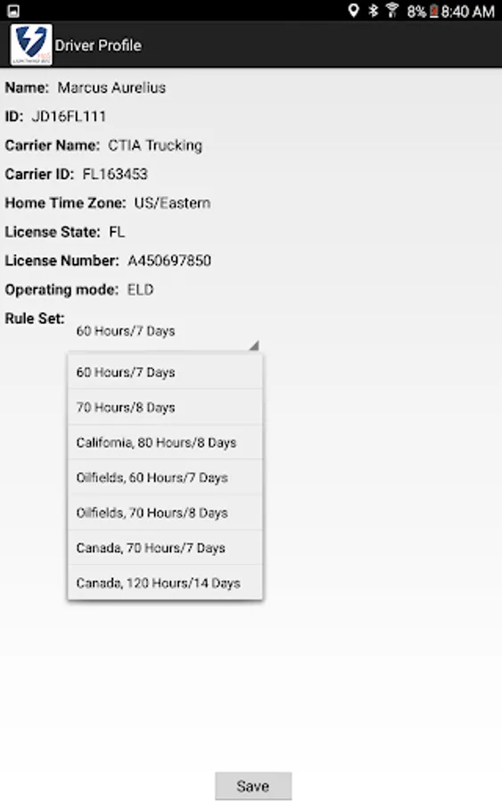 Compliant app to record driver duty status and meet the following regulations: