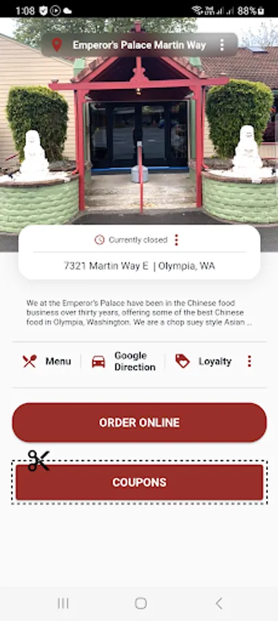 Emperor’s Palace restaurant app has many different functions. It contains and online ordering link, restaurant images, address and driving directions, store hours, menus, and many other great features.