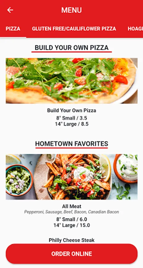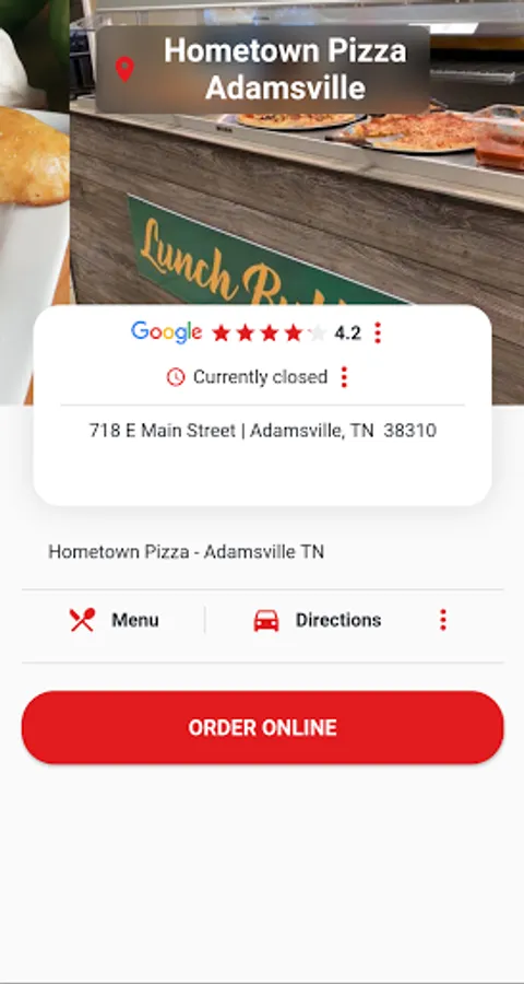 Hometown Pizza app has many different functions. It contains and online ordering link, restaurant images, address and driving directions, store hours, menus, and many other great features.
