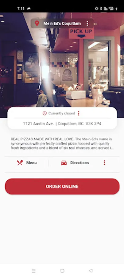 Me n Ed’s Pizza restaurant app has many different functions. It contains an online ordering link, restaurant images, address and driving directions, store hours, menus, and many other great features