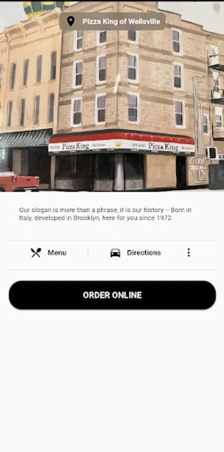 Pizza King of Wellsville restaurant app has many different functions. It contains an online ordering link, restaurant images, address and driving directions, store hours, menus, and many other great features.