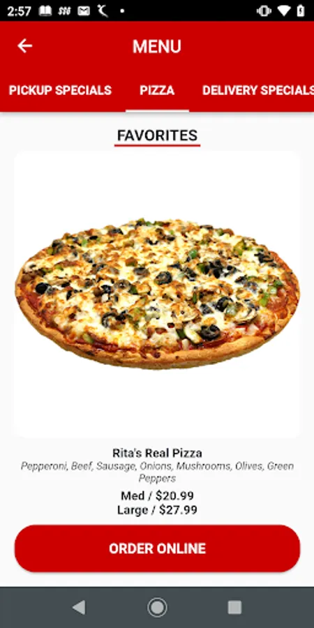 Pizza Rita app has many different functions. It contains an online ordering link, restaurant images, address and driving directions, store hours, menus, and many other great features.
