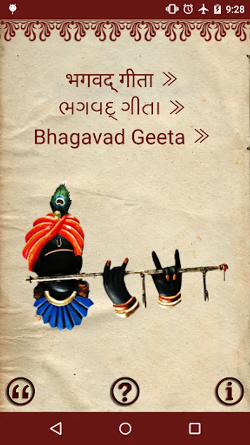 Most will say, without a blink, the bhagwat geeta. But few know that the gita’s global fame is a very recent phenomenon, consequent to the western ‘discovery’ of what Europeans thought was Hinduism’s national text. That’s why in this bhagavad gita app there are four languages. Bhagwat geeta in Hindi free,Bhagwat geeta in english, bhagwat geeta in gujarati and bhagwat geeta in sanskrit.