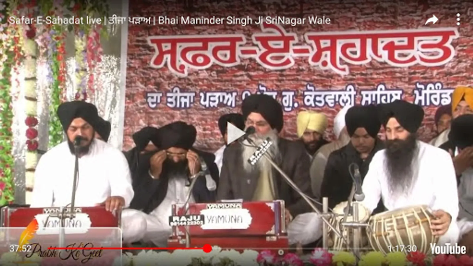Bhai Harjinder Singh Ji, Bhai Maninder Singh Ji & Bhai Jatinder Pal Singh (Sri Nagar wale) is a ragi jatha who are well known to most Sikhs globally. They have been performing kirtan from a very young age and are self-taught. Bhai Harjinder Singh is the elder brother of Bhai Maninder Singh who are exceptional both vocalist and very able harmonium player. Bhai Jatinder Singh plays the Tabla. For almost two decades the jatha has enlightened Guru-ki-sangat in all parts of the world.