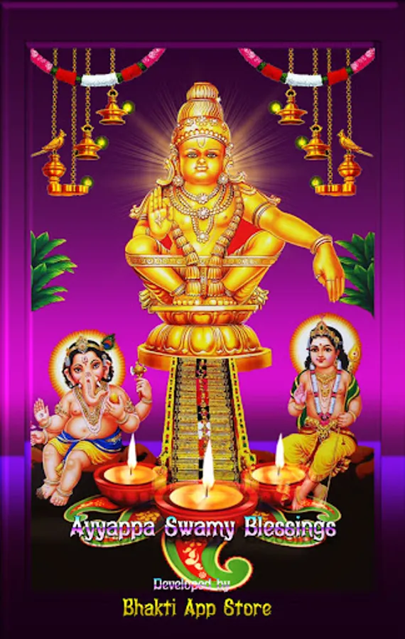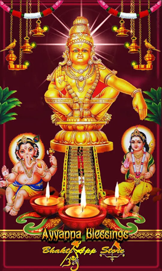 Ayyappa Swamy Blessings Theme Live Wallpaper with rays animation, bells, flowers, Deepavali ( Traditional oil lamp ), Stars & leafs fall animation with magic touch & Lord Ayyappan Temple Themes.