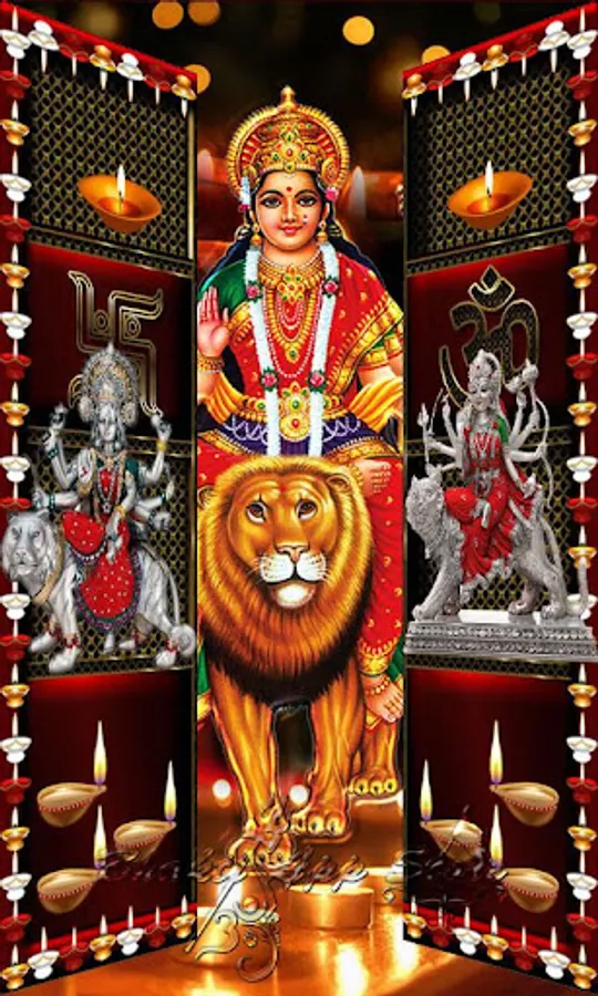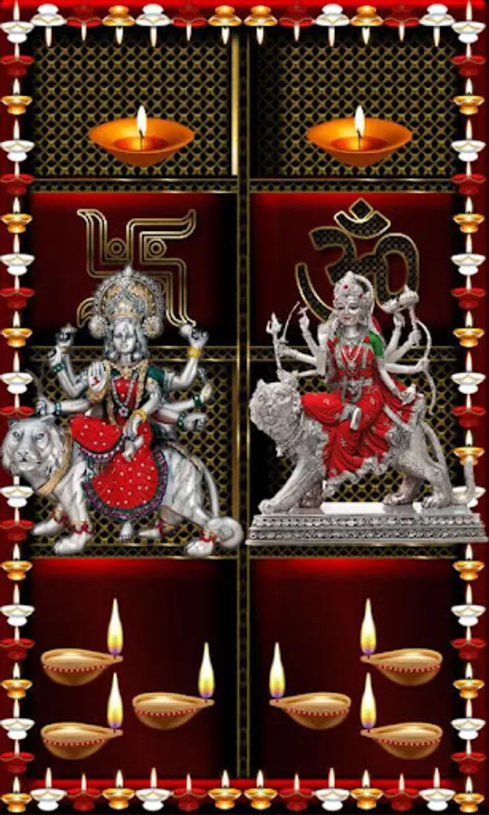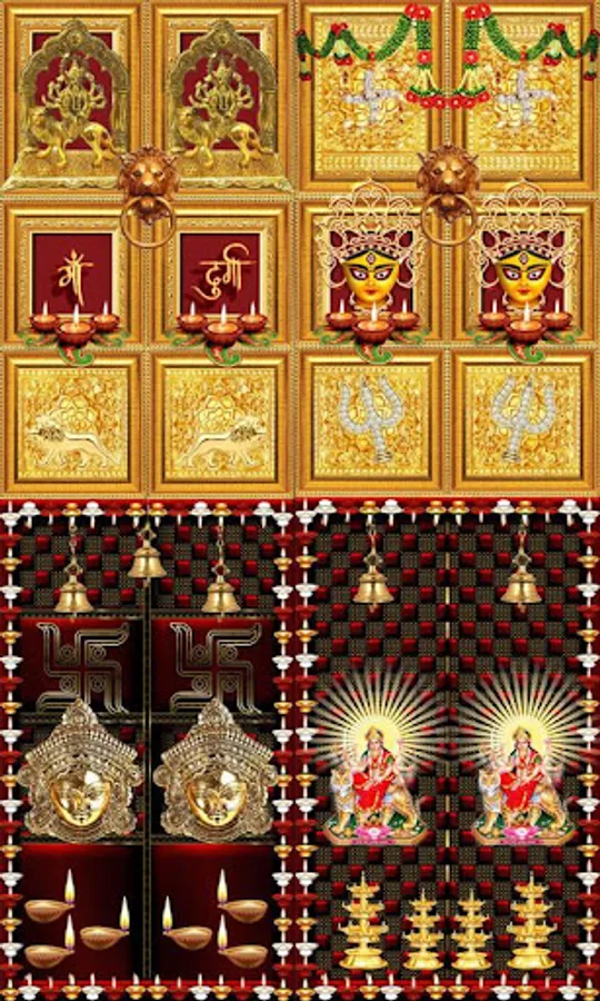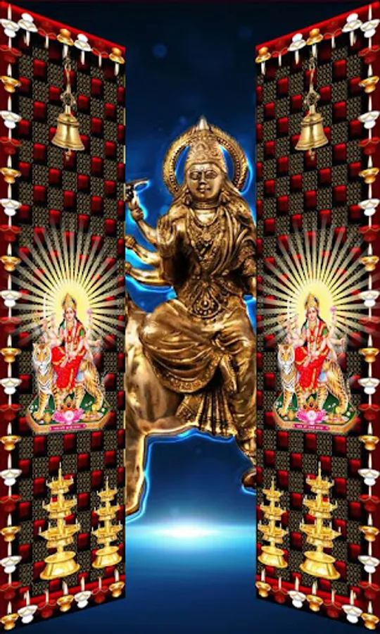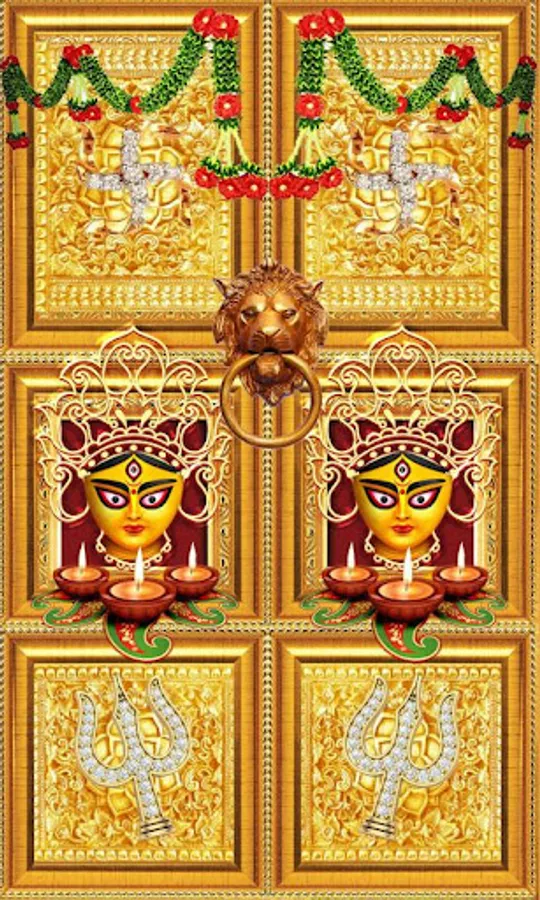 Durga Matha Theme Temple Door mobile Lock screen for Happy Navaratri & Dussehra Festivals. You have an option to set 25 different types of themes for Goddess Durga mata Background to apply for lock screen. Temple Door Opening animation for unlock the lock screen.