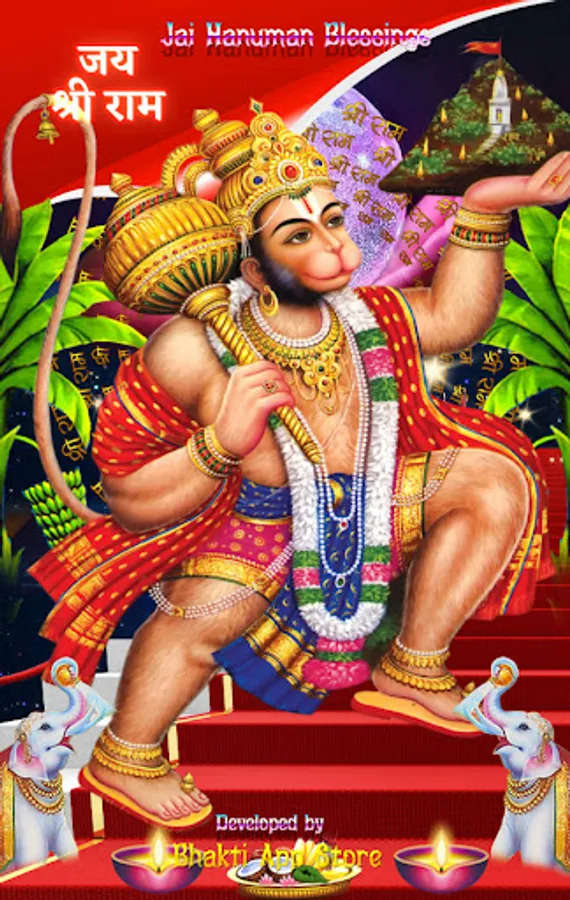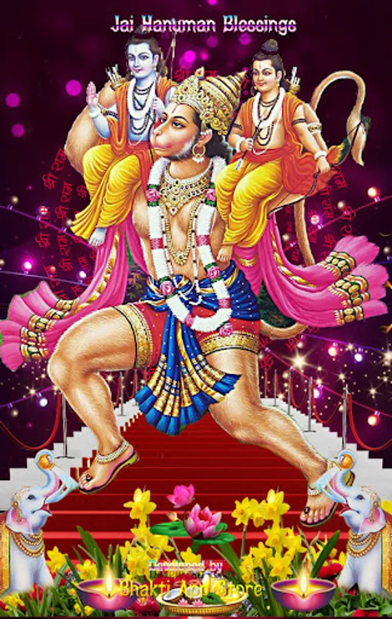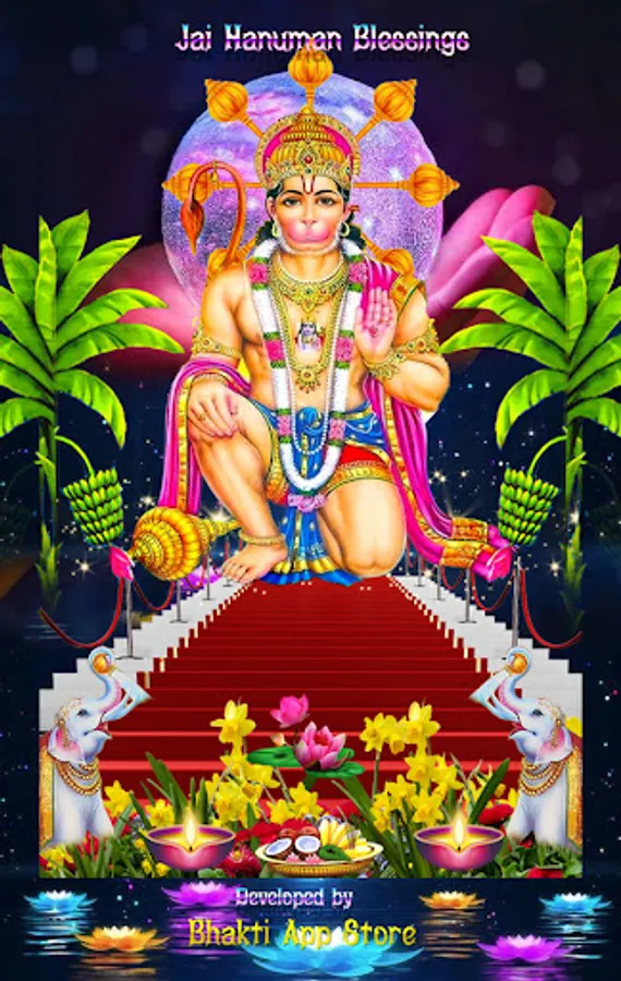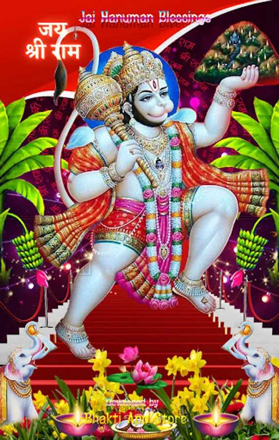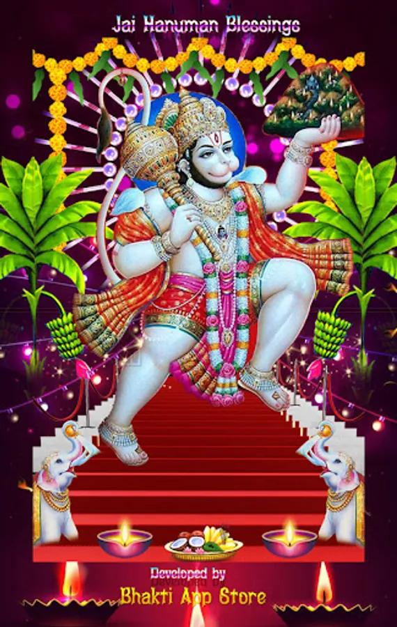 Jai Hanuman Blessings Theme Animated Live Wallpaper for your home screen and lock screen & Hindu Festival greeting cards making with this tool.