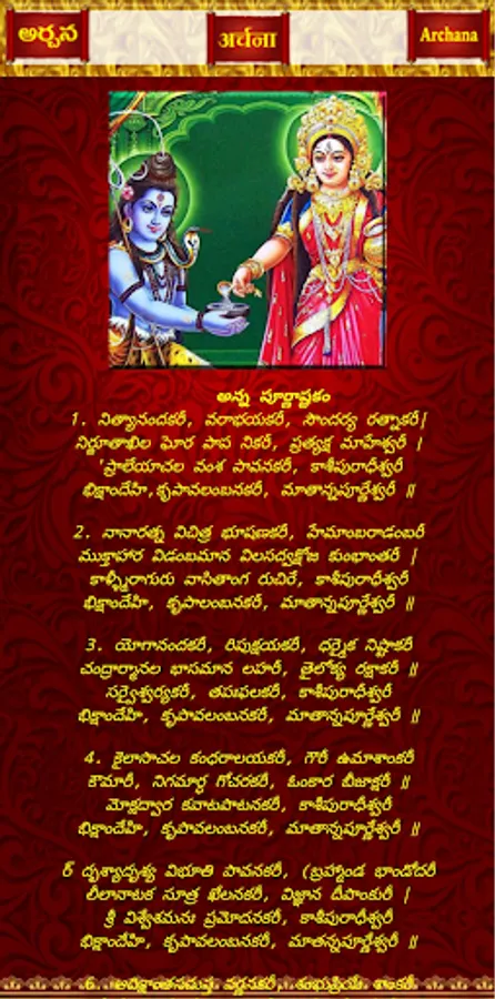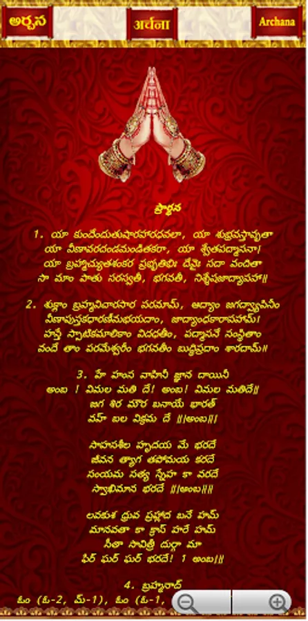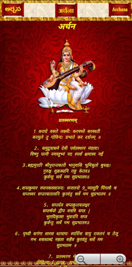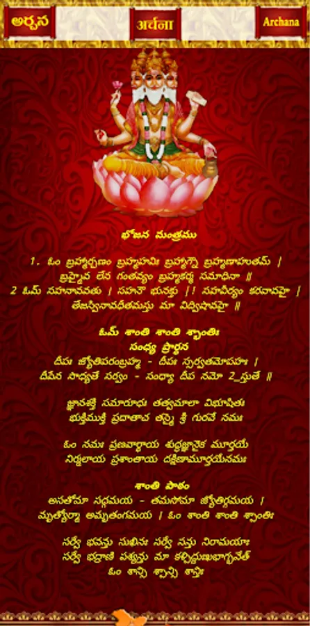 Devotional Hindu Archana Book contains all types of daily prayer for students and devotees. It includes Sarswati Mata shloka, Bhojana, Shanthi , Gayatri Mantram, Annapurna ashtakam, Hanuman Chalisa, Adarsha hindu Home & villages quotes based Sadhacharam. App Content in Telugu, Hindi, English languages.