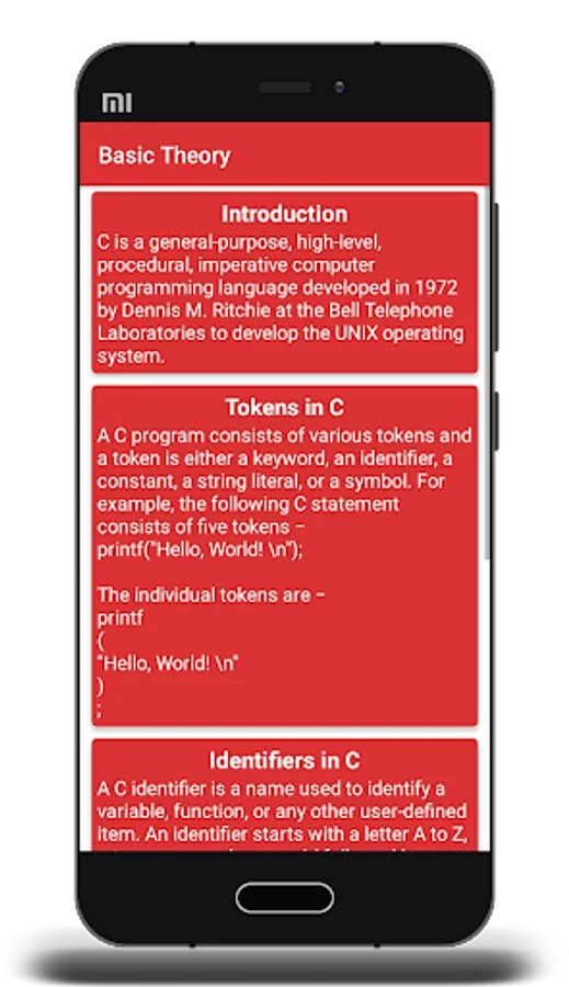 In this android application named 'Master C Programming' users can lean C from basic to advance. This app basically consists of four sections i.e., Basic Theory, Basic Programs, Conceptual Programs and Question & Answers.