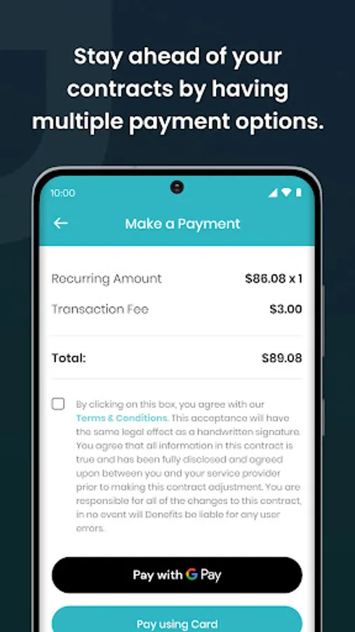 Denefits offers a simple platform that allows you to spread your business expenses over months or years and pay the cost in easy & affordable monthly payments. Moreover, we never charge you a fee not declared to you. The business will let you know the terms beforehand.