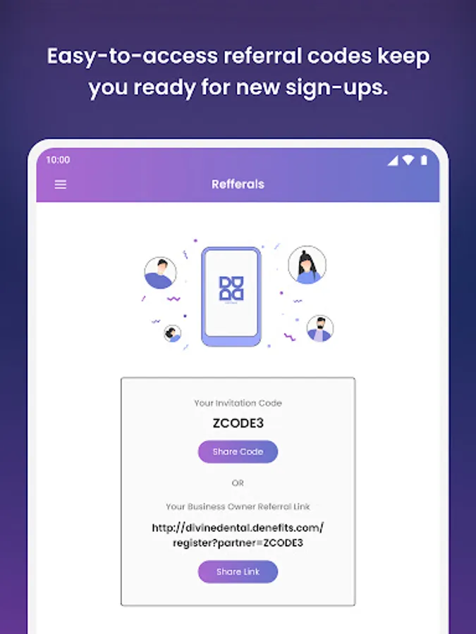 With a clear, simple design, the Denefits partner program mobile app offers benefits such as: