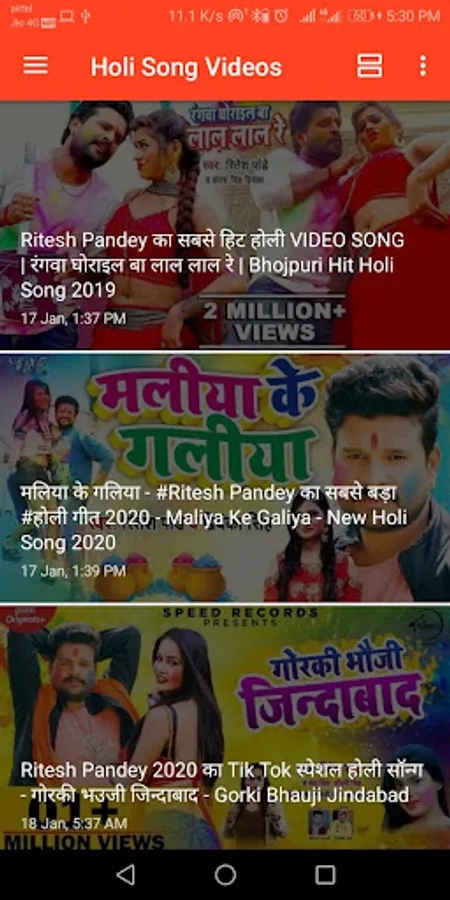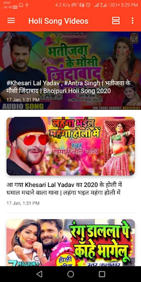 This holi listen online Trending HD bhojpuri songs of your favourite stars like Khesari lal Yadav, Dinesh lal Yadav, Pawan Sing in you regional language and enjoy your holi, Bhojpuri Holi Song 2021 - HD Videos App has all latest and old collections of songs in full HD.