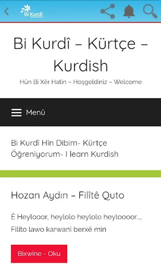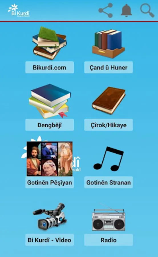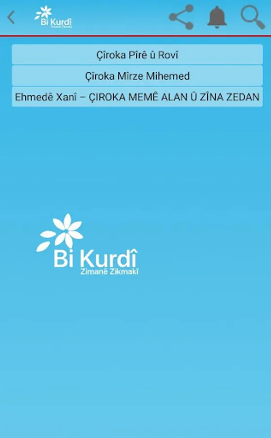 Kurdish education, story tale, history, lyrics, poems are all available in our application.