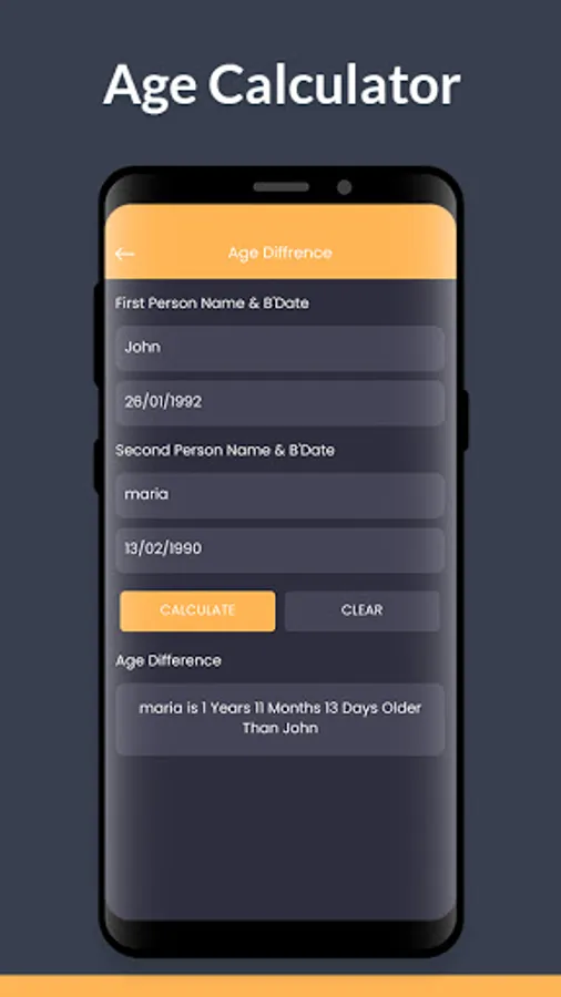 Seeing the exact result through this age calculator app, your friends might ask you "Check my age", and the best part of this age app is you can check the exact age for any number of people you want. All you need to do is enter correct date of birth of individuals .