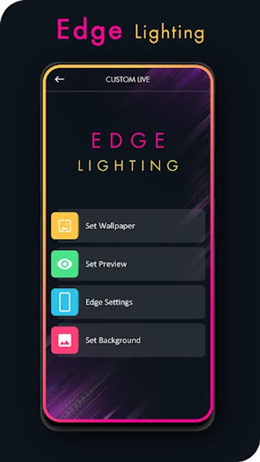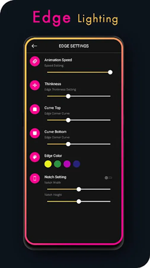 You can use Settings available in the application to customize the EDGE lighting as per your choice like changing the colors, adjust width, type of EDGE lighting border, display notch settings, HD wallpapers and Magical EDGE Lighting.