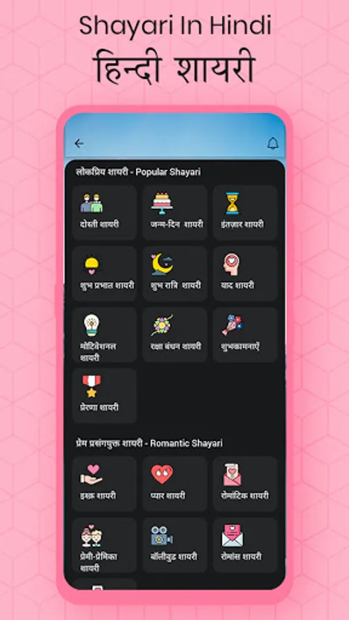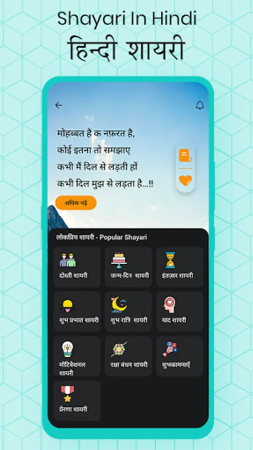 Hindi Shayari app lets you explain sentiments in all their forms through rhythmic words. This is one of the best collection of latest pyar mohaabat shayari, which is totally free and no internet connection is required.