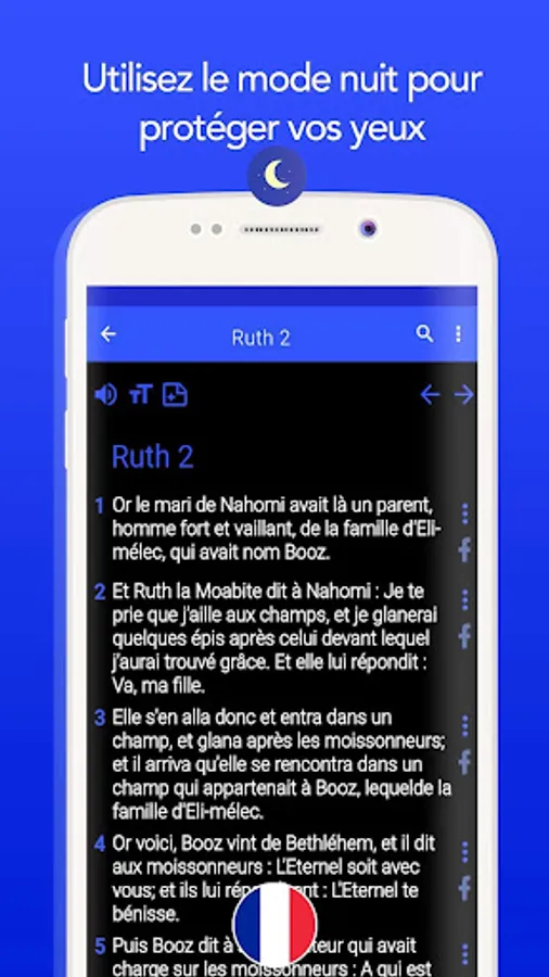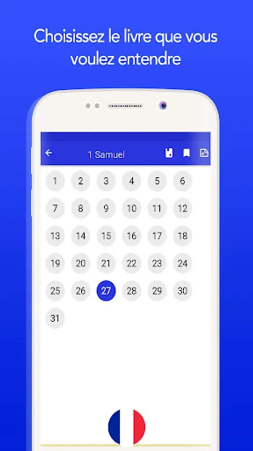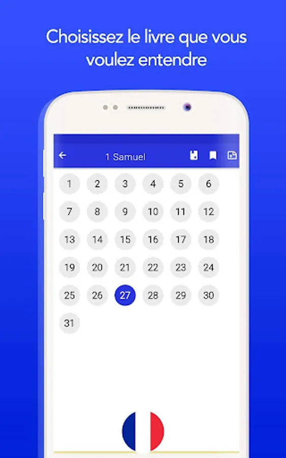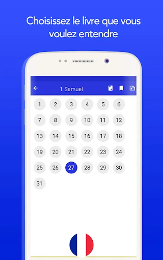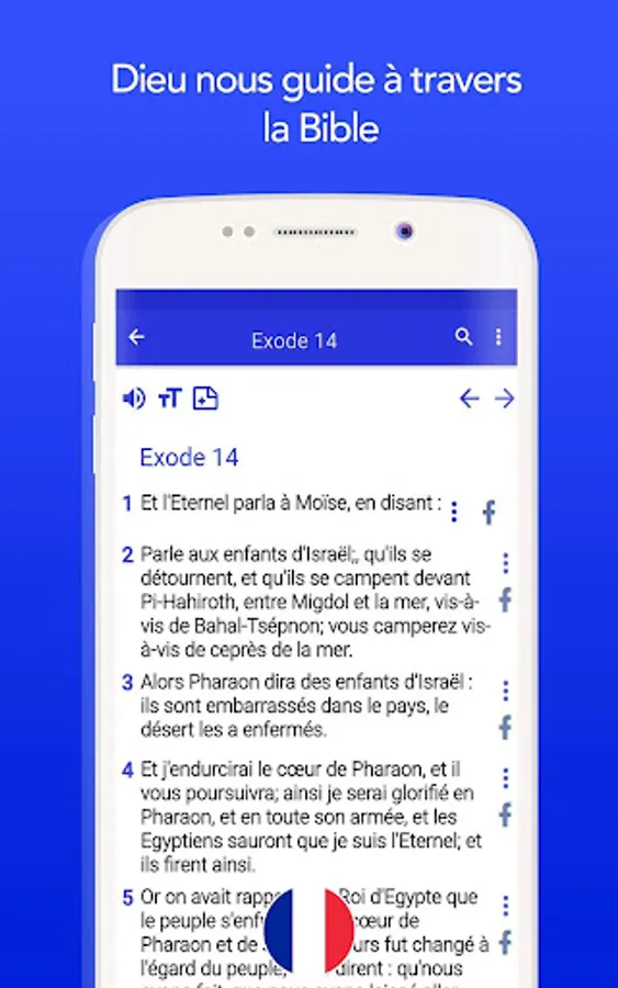 The Audio Bible app contains French Bible Martin, fruit of the work of the theologian David Martin, published in 1744.