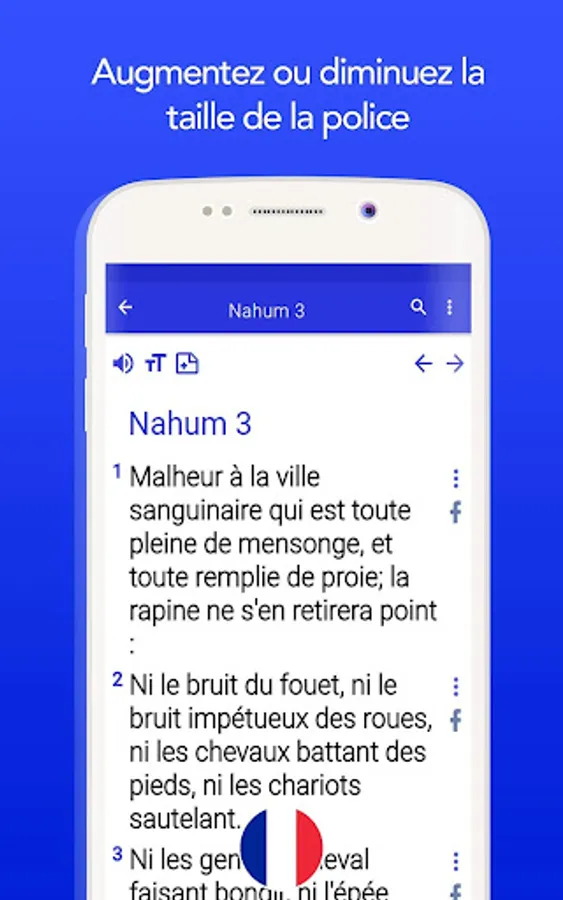Take everywhere with you the Holy Bible. Download it for free on your Android phone or tablet and enjoy this unique translation of the Bible into easy to understand French and faithful to the original languages.