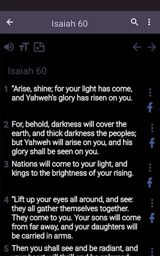 Our app allows you to protect your eyes at night by turning on the Night Mode, now the excessive light of your screen cannot harm your eyes while you are reading the pure words of the Holy Bible.
