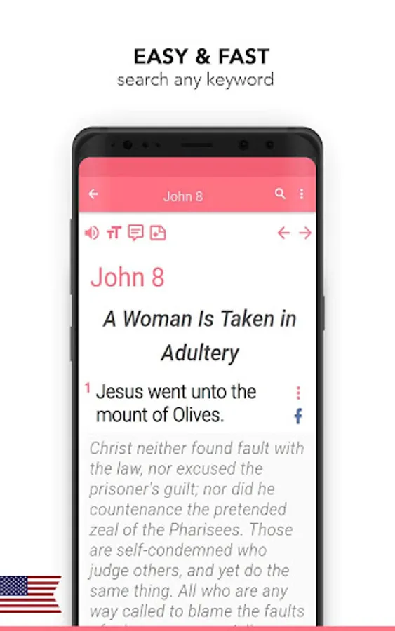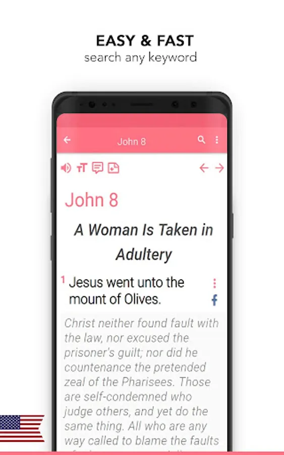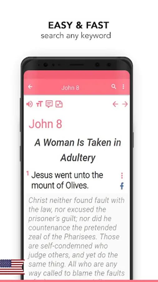 - Next to the verse, you will find the share button that you can use to easily share directly on Facebook.