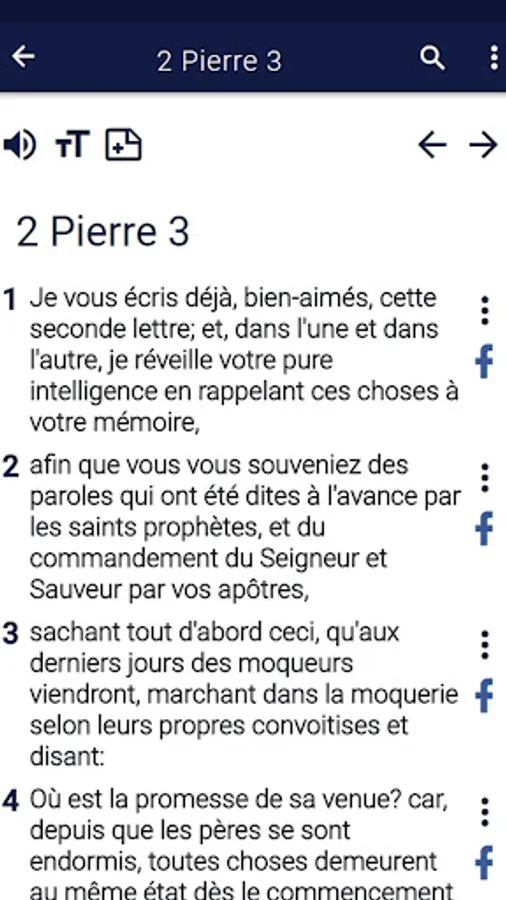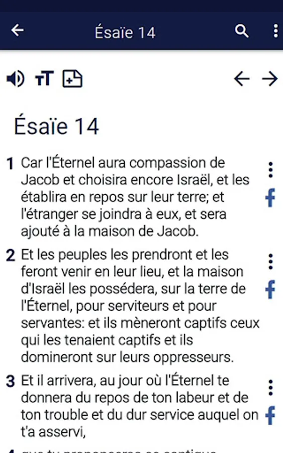 Easily navigate through the entire Bible in a Testament, a book or chapter.
