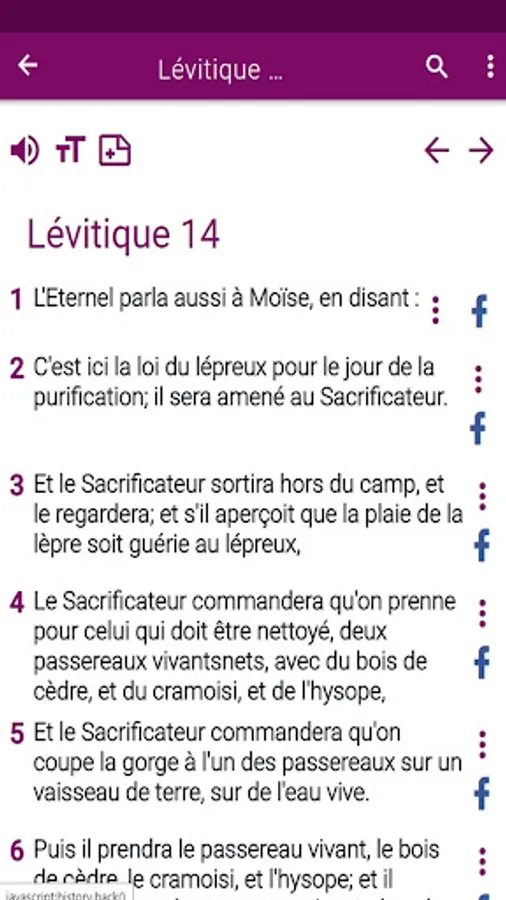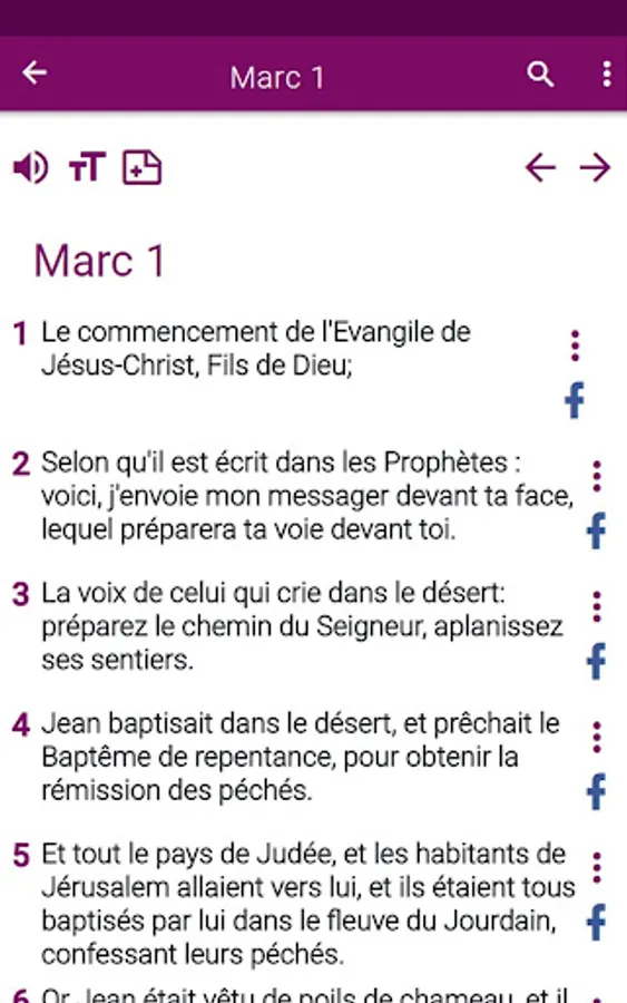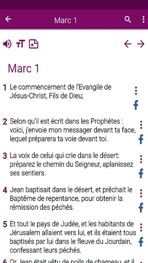 Press the audio icon to select the chapter or verse you want to hear. You can adjust the sound settings (speed, volume, treble, bass, etc.)