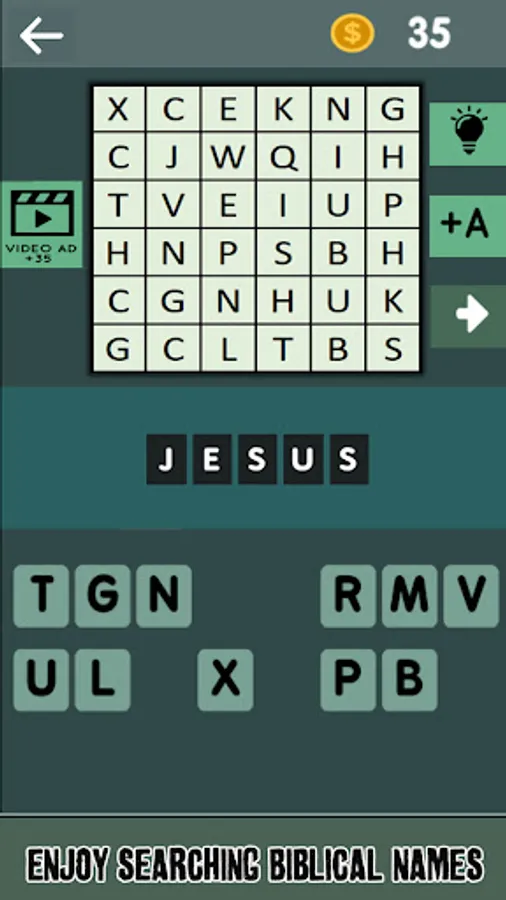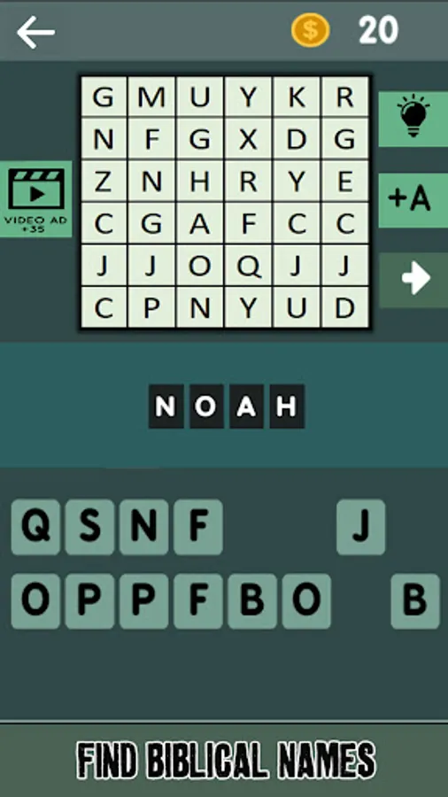 Each level presents a grid filled with mixed letters, the typical word search. It contains the name of a character from the Bible, and these names can be in all possible directions: horizontal, vertical, diagonal, and even backward. Your mission will be to find the name of the hidden biblical character in the word search and enter it in the provided space.