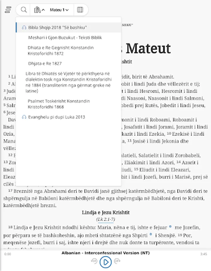 Pjesët Biblike të Mesharit dhe Dhiata e Re dhe Dhiata e Re e Vangjel Meksit dhe Grigor Gjirokastrit u përgatitën nga Thoma Qendro.