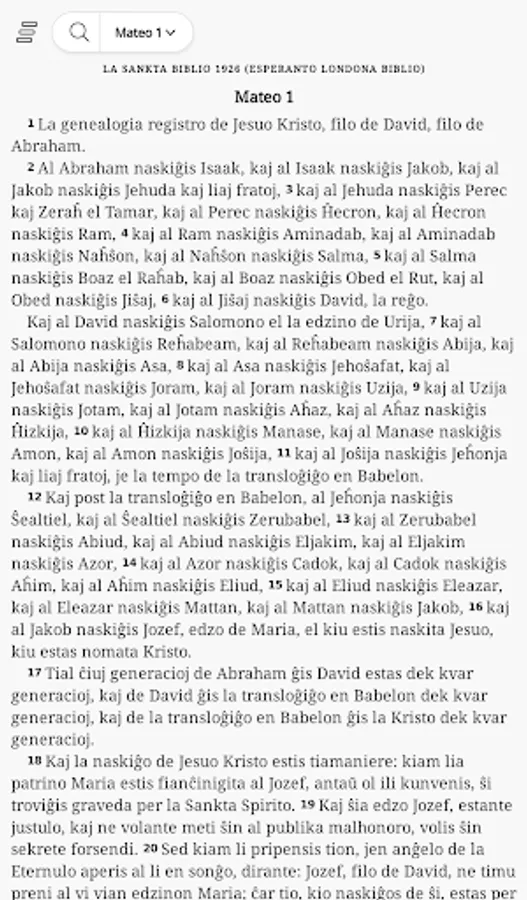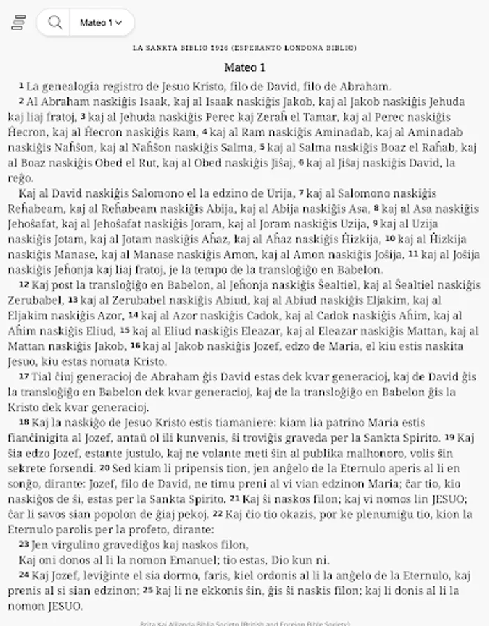 This Esperanto Biblio is a simple Bible in your pocket. We’ve intentionally made the application simple to have focus on God’s word without distractions. The interface to browse and search the Bible is easy to use, with the added benefit of offline reading when the internet is not accessible.