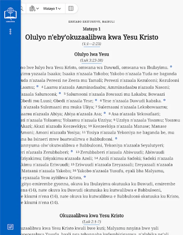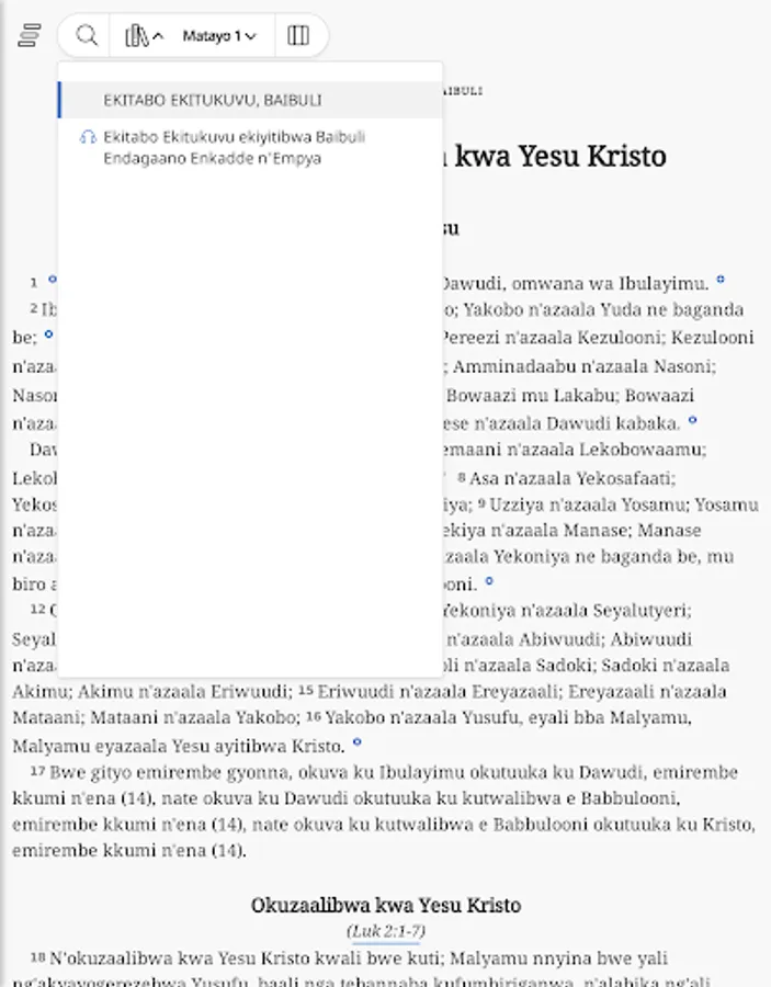 Baibuli eno Ekitabo Ekitukuvu Ekiyitibwa Baibuli - Luganda Bible 1968 Edition, ekoleddwa nga Baibuli enyangu eyo mu nsawo. Kino kigendereddwa okukusobozesa okussa essira ku kigambo kya Katonda awatali kikutataganya. Okubikkula n’okunonya mu Bayibuli kikoleddwa nga kyangu okukozesa nga mulimu omuganyulo gw’okugikozesa n’okugisoma newankubadde omutimbagano guba teguliko.
