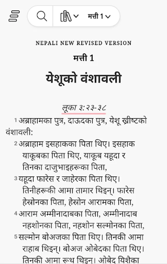 This नेपाली बाइबल - Nepali App is a simple Bible in your pocket. We’ve intentionally made the application simple to have focus on God’s word without distractions. The interface to browse and search the Bible is easy to use with the added benefit of offline reading when the internet is not assessable.