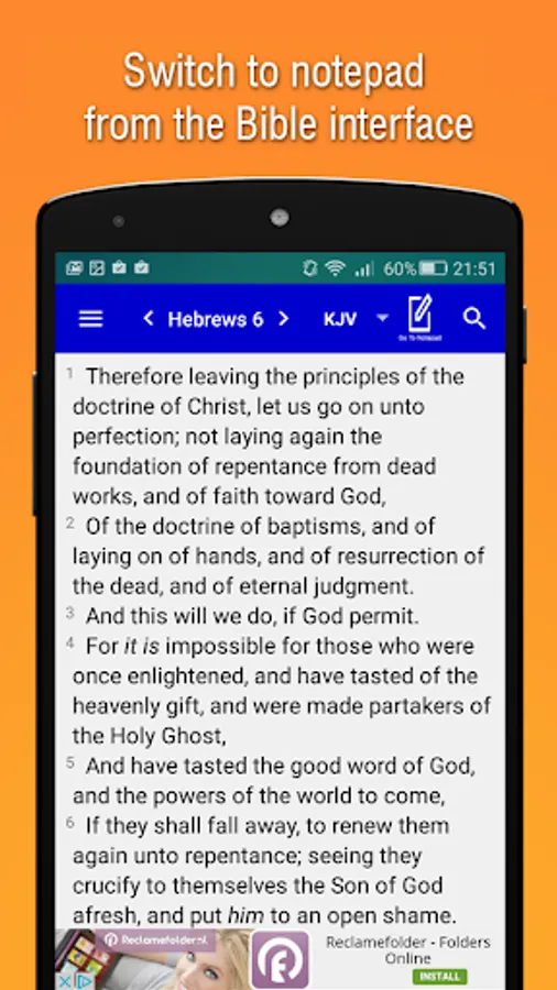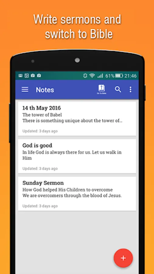 You have the ability to make notes in the Bible and you can also write your sermons in the notepad section. This means with this Bible you don't have to carry any notebook. All you have is in the app.