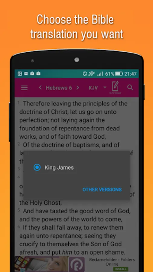 Each morning you get free daily bible verses which will motivate you and will help you study the word of God. You can take notes whenever you need to and also share with others. This is the first free Bible that has a notepad with it. This means during church service you get to take notes and read at anytime. The good news about this free Bible is that you don’t need internet to use. You can do everything you want to and when you want to use internet, nothing gets affected.